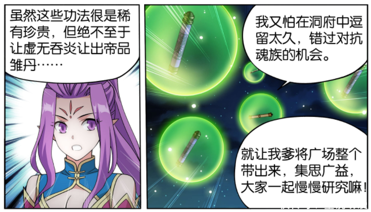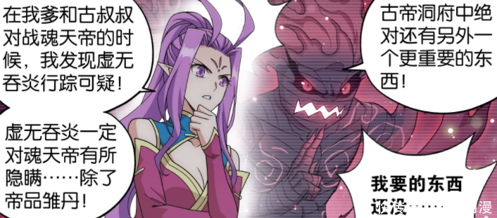 虽说漫画版中,烛坤并不知道第二种成为斗帝的方式,但紫妍的洞察力一绝。在古元和烛坤对付魂天帝之时,紫妍发现了虚无吞炎的异常,他有很在乎的东西,而且没有拿到。所以紫妍在古帝洞府停留那么久,不仅为了搜刮宝物,还要让众人一起发现异火广场和陀舍古帝雕像有何秘密?